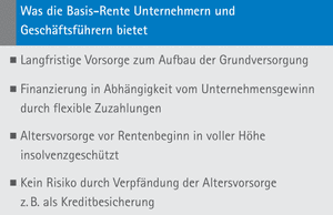 Ein Unternehmer trägt ein wirtschaftliches Risiko. Sein Einkommen und sein Vermögen sind vom Erfolg seines Unternehmens abhängig. Eine Altersvorsorge über die Basis-Rente wird seinen individuellen Ansprüchen gerecht.
